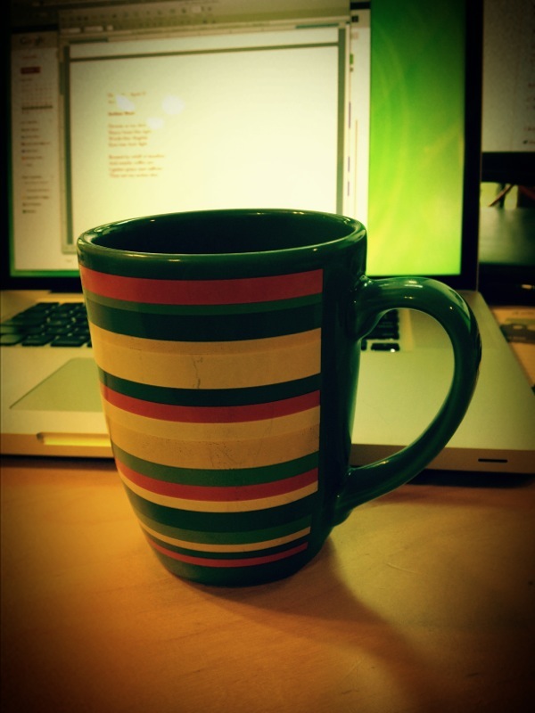 Action Shot April 27, 2012 · by bethnyland · in Poetry. · Day 118 prompt: Action Shot Drowsy at my desk Heavy head tilts right Words blur illegible Eyes lose their fight Roused by whiff of deadline And nearby coffee pot I gather grace and caffeine They are my action shot Pass this along ... Click to share on X (Opens in new window) X Click to share on Facebook (Opens in new window) Facebook Click to share on LinkedIn (Opens in new window) LinkedIn Click to share on Pinterest (Opens in new window) Pinterest Click to email a link to a friend (Opens in new window) Email Click to print (Opens in new window) Print More Click to share on Pocket (Opens in new window) Pocket Click to share on Tumblr (Opens in new window) Tumblr Click to share on Reddit (Opens in new window) Reddit Like Loading...