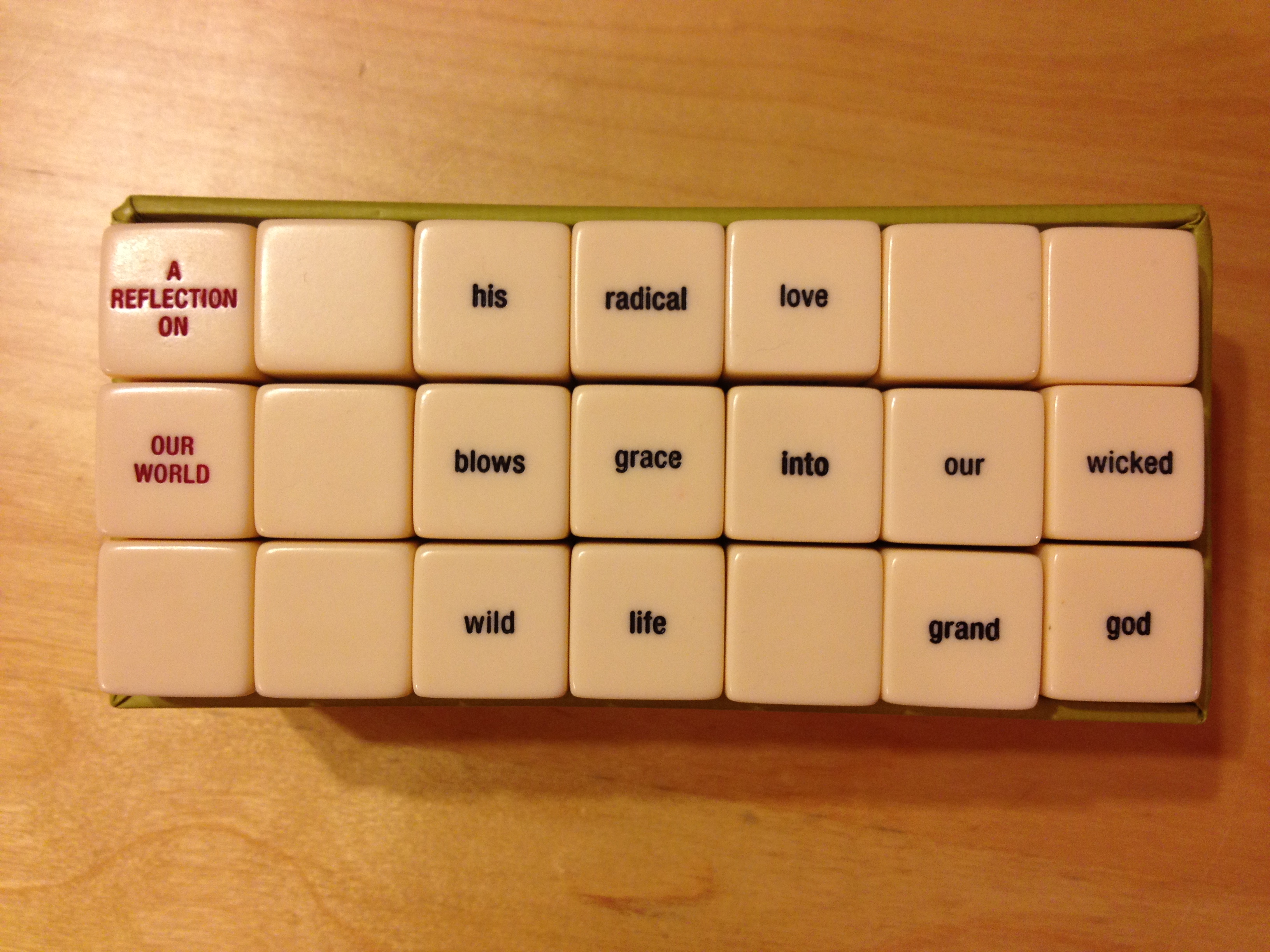 Grand God April 29, 2013 · by bethnyland · in Na-Po-Wri-Mo, Poetry. · I broke out the Haikubes for today’s poem. These words assembled themselves quickly. I must be feeling small and grateful … Pass this along ... Click to share on X (Opens in new window) X Click to share on Facebook (Opens in new window) Facebook Click to share on LinkedIn (Opens in new window) LinkedIn Click to share on Pinterest (Opens in new window) Pinterest Click to email a link to a friend (Opens in new window) Email Click to print (Opens in new window) Print More Click to share on Pocket (Opens in new window) Pocket Click to share on Tumblr (Opens in new window) Tumblr Click to share on Reddit (Opens in new window) Reddit Like Loading...