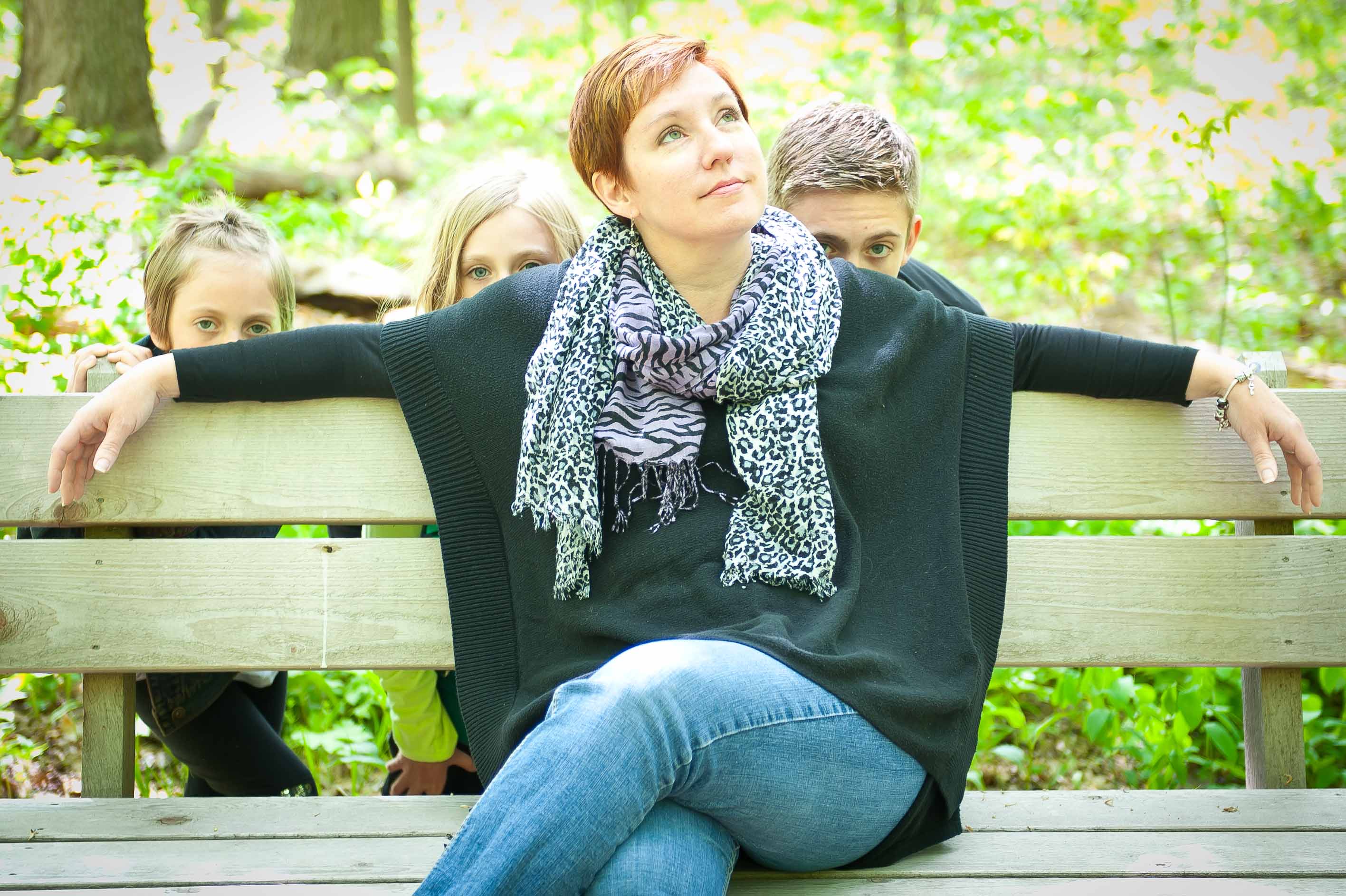 Better yet, Jim and the kids and I went out for lunch, then cruised through the Morton Arboretum looking for a great spot to take photos. We returned to a bridge Jim and I visit often, and I told the family my mission: to take a picture where the kids—my creations—seem hidden in my background.