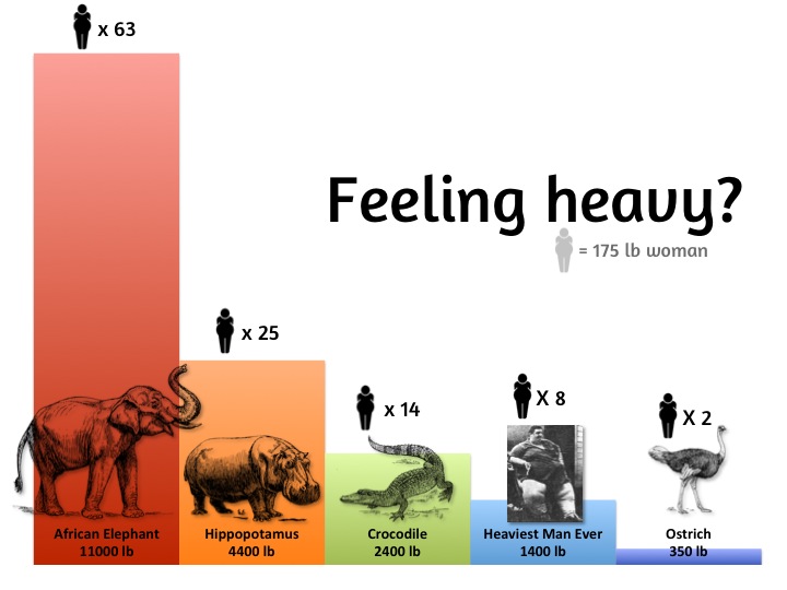 So today I created an infographic to put weight in perspective. Have a look at how a 175-pound woman compares with several animals—as well as the heaviest man ever recorded.