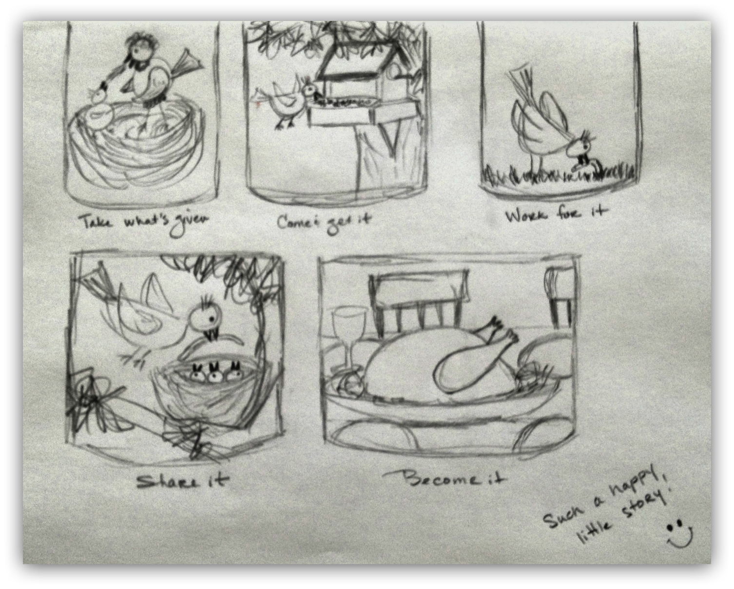 With all the amazing farm-life imagery we had brainstormed, I expected to write a poignant essay or evocative poem. Nope. What came was a rather ridiculous comic strip: