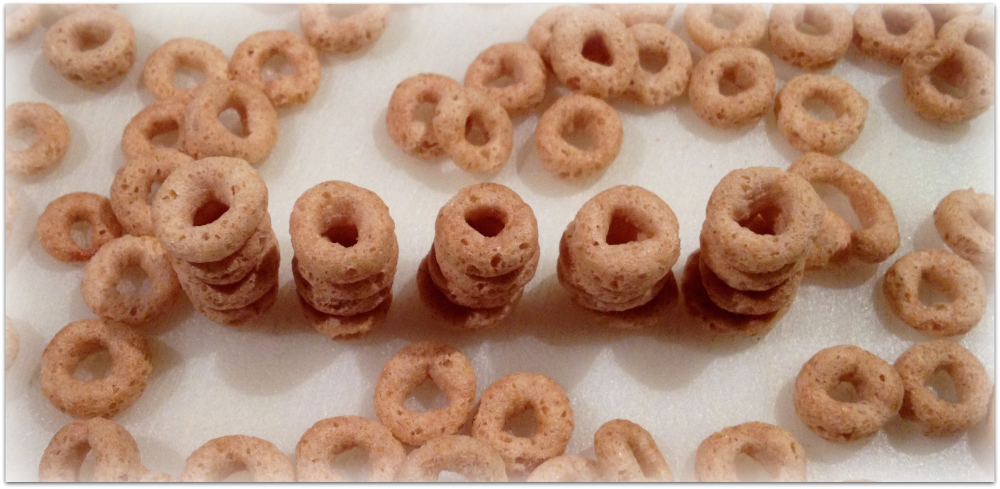 I thought of my son sitting in his high chair, pushing Cheerios around the tray. (He’s 15 now, so I haven’t taken in this scene for quite some time. But I remember it well.) He was always so intent on those crunchy little circles. First, trying with all his might to pinch just one and maneuver it to his mouth. Then, as he got older, lining them up, arranging them in patterns, counting them, and—ultimately—learning to stack them.