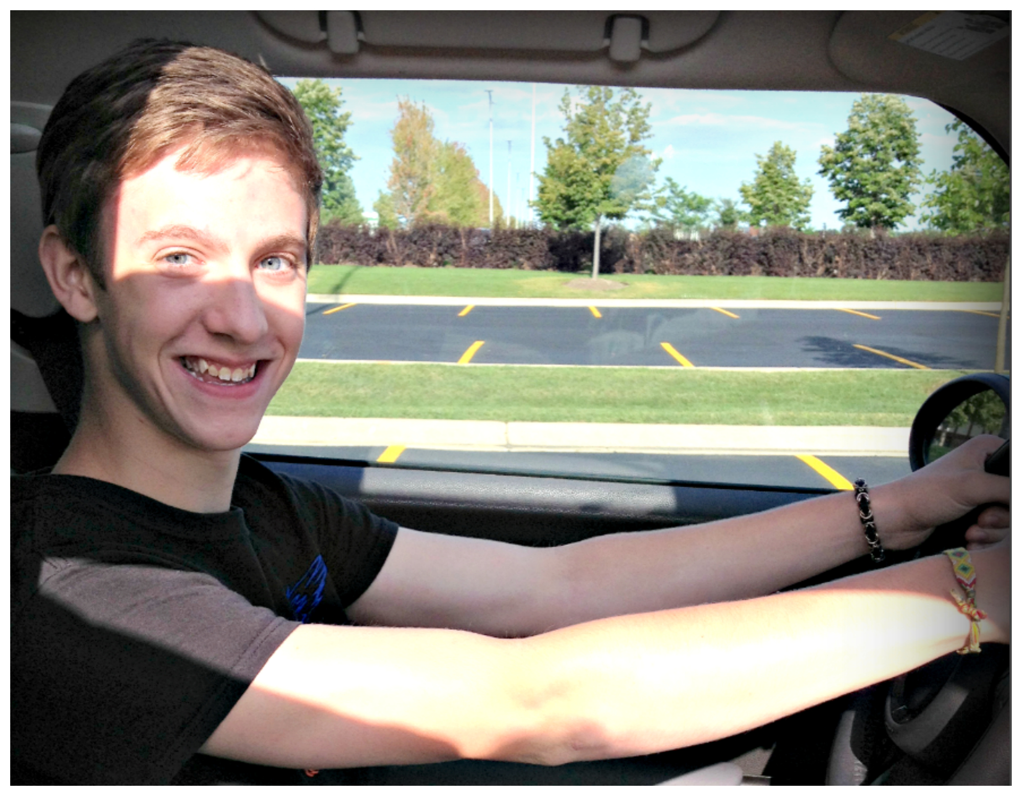 4. Look how excited he is! Teenage guys don’t always grin like this. Smug and aloof is more the norm. But this is a rite of passage, and Isaac is pumped. He is genuinely happy to take the wheel.
