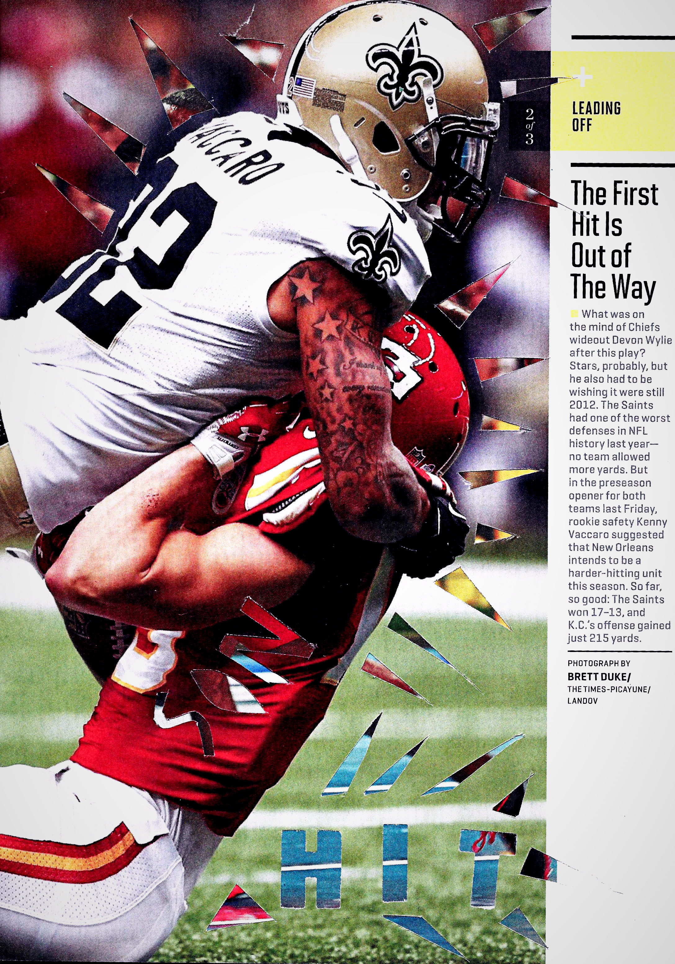 Then he crossesthat wide white line, onto the expanse of turf where he must maneuver his way through the coach’s scheme. He crouches down, clenches his fists, and sets his gaze forward—looking right into the face mask of a truck of a boy from some rival school.