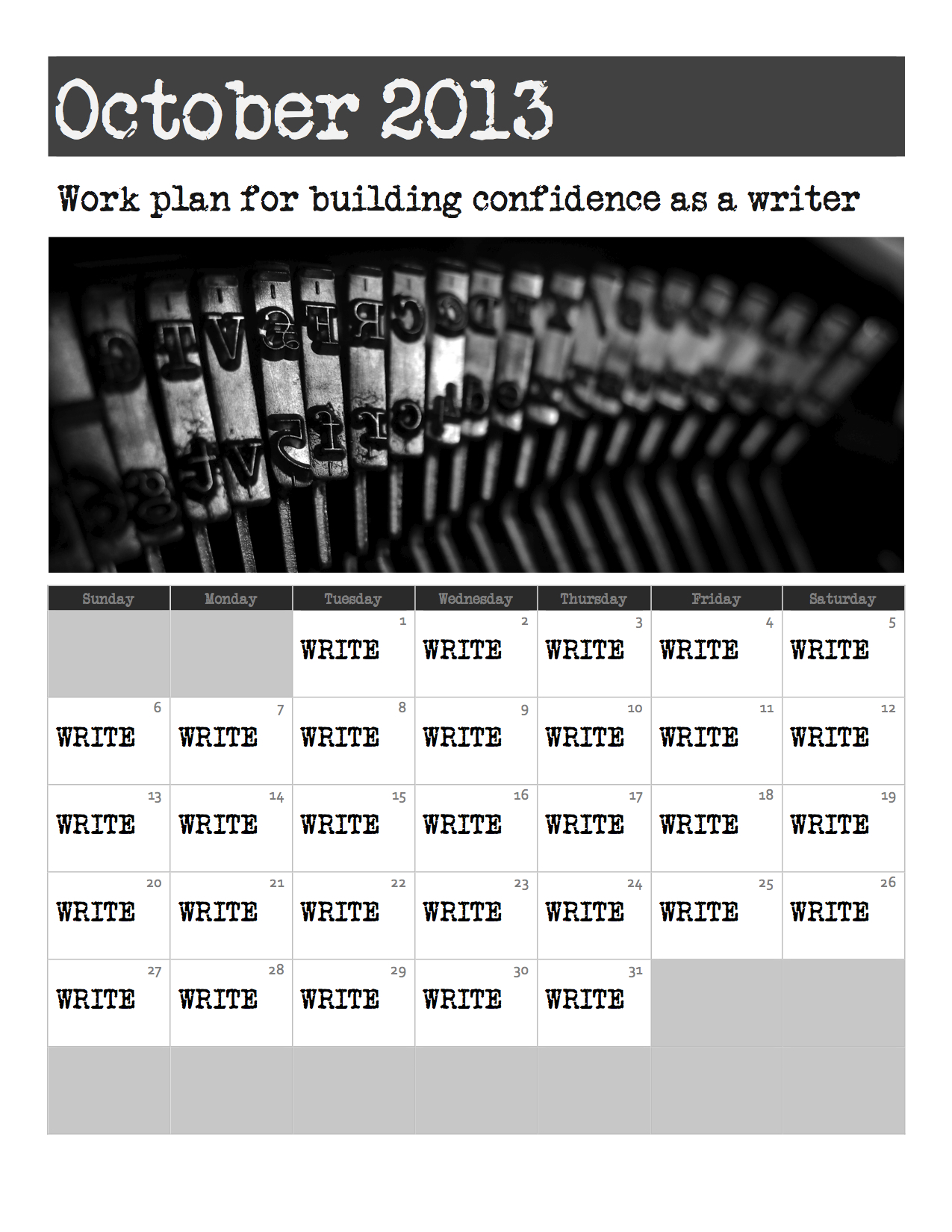 So for today’s creative activity, I developed an action plan—in calendar form—for becoming a more confident writer.
