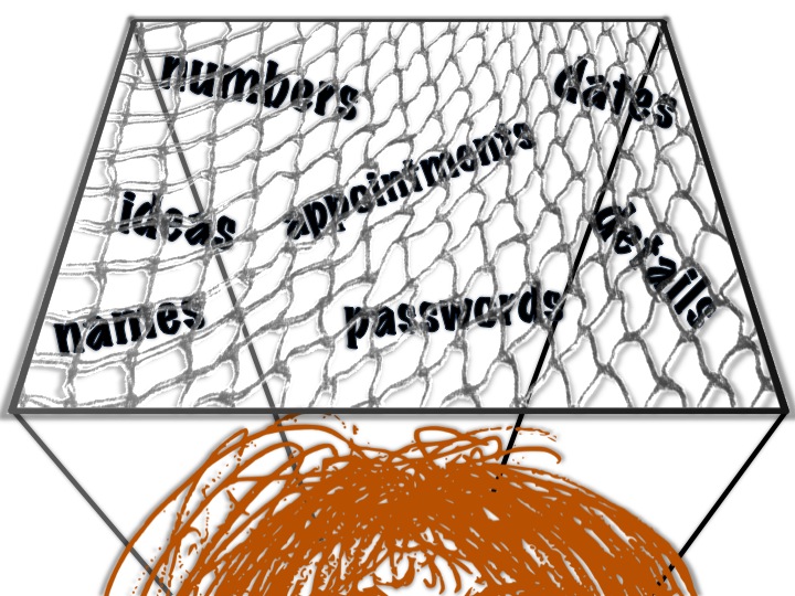 Wouldn’t it be great, I thought, if I could hoist a net above my head? Then, as those useful bits of information begin to flutter away from my brain, I could trap them and look up to discover what nearly got away.
