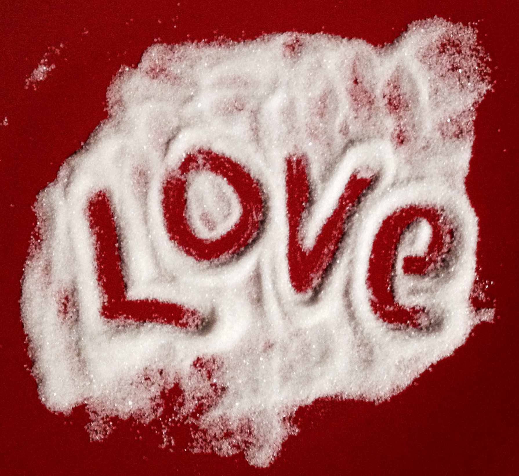 A dozen friends are coming over in a few minutes. The wine is ready, the candles and fireplace are lit, and Amy Winehouse is singing softly. With a moment to breathe, I poured some sugar on a red plate, patted it out, and wrote a sweet word …