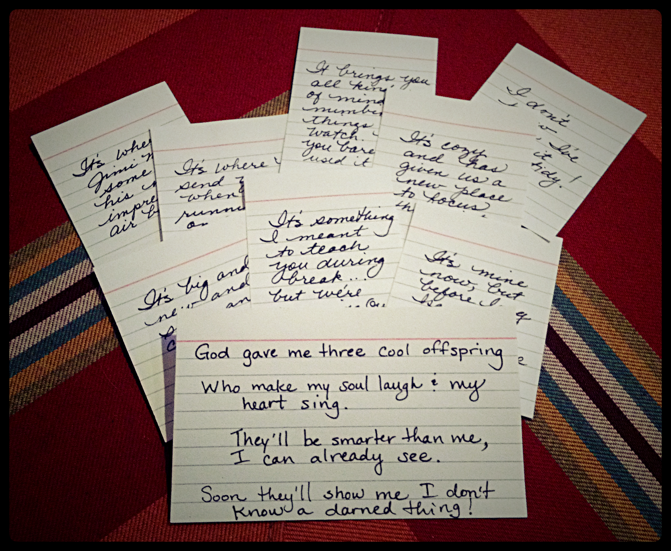 When my daughters discovered the poem in the refrigerator door, I think they were, well, underwhelmed. So I hugged them and let them choose dessert. That seemed to do the trick.