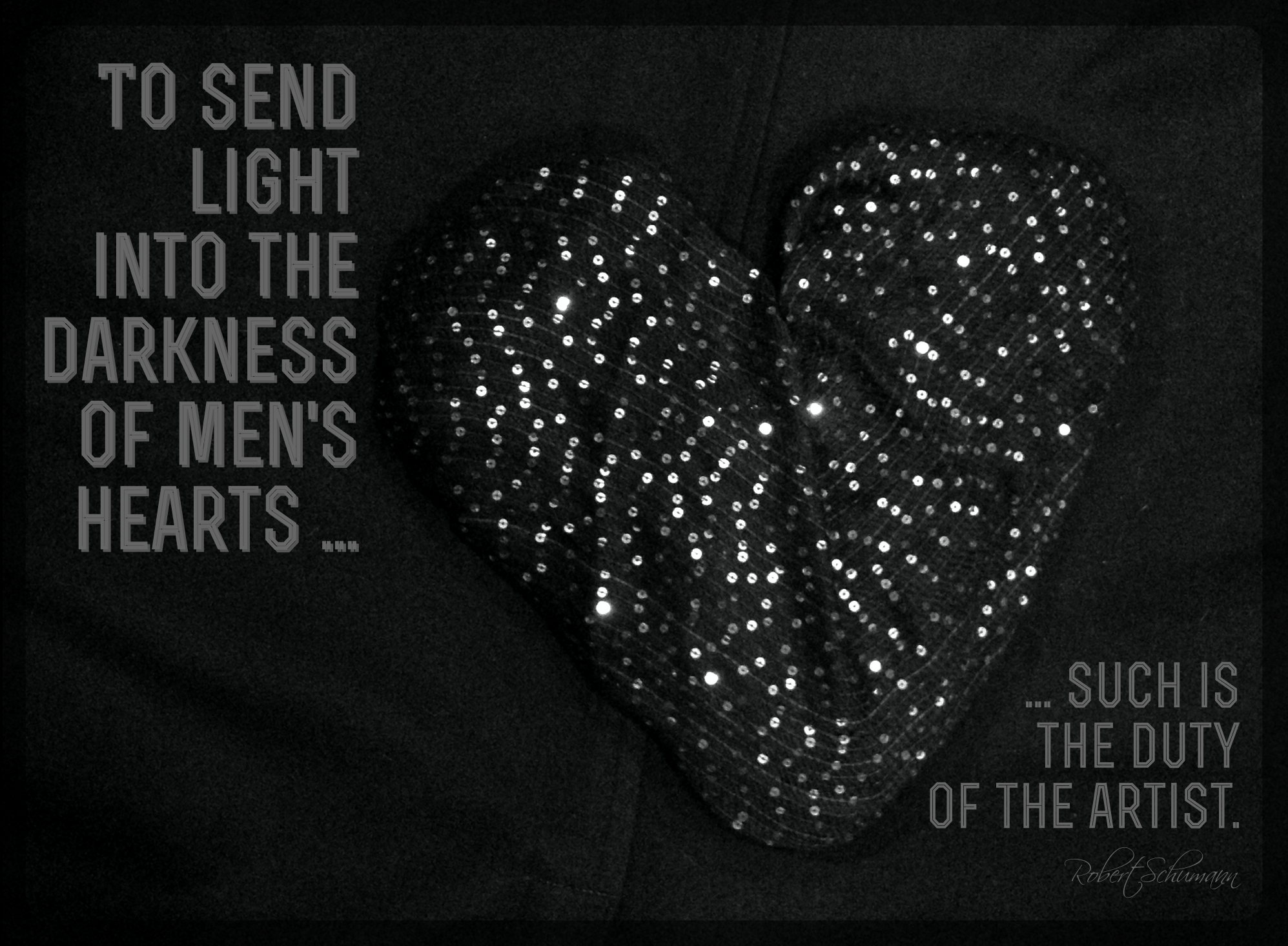 To create the image, I arranged my sequined black scarf on my husband’s black wool coat, snapped a photo, cropped, then added Schumann’s words.