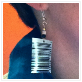 I trimmed the bar code away from two beverage cans, then added a few beads and hooks to create a funky pair of earrings. The output has very little to do with my theme of “words” … except that bar code jewelry will probably start a few conversations.