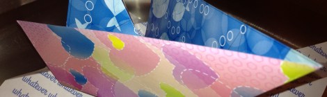Make something that floats? Okay. Whatever floats your boat! Origami boat on accordion-folded wax paper + plain paper printed with repeated pattern of “whatever.” Floating in my kitchen sink. There […]